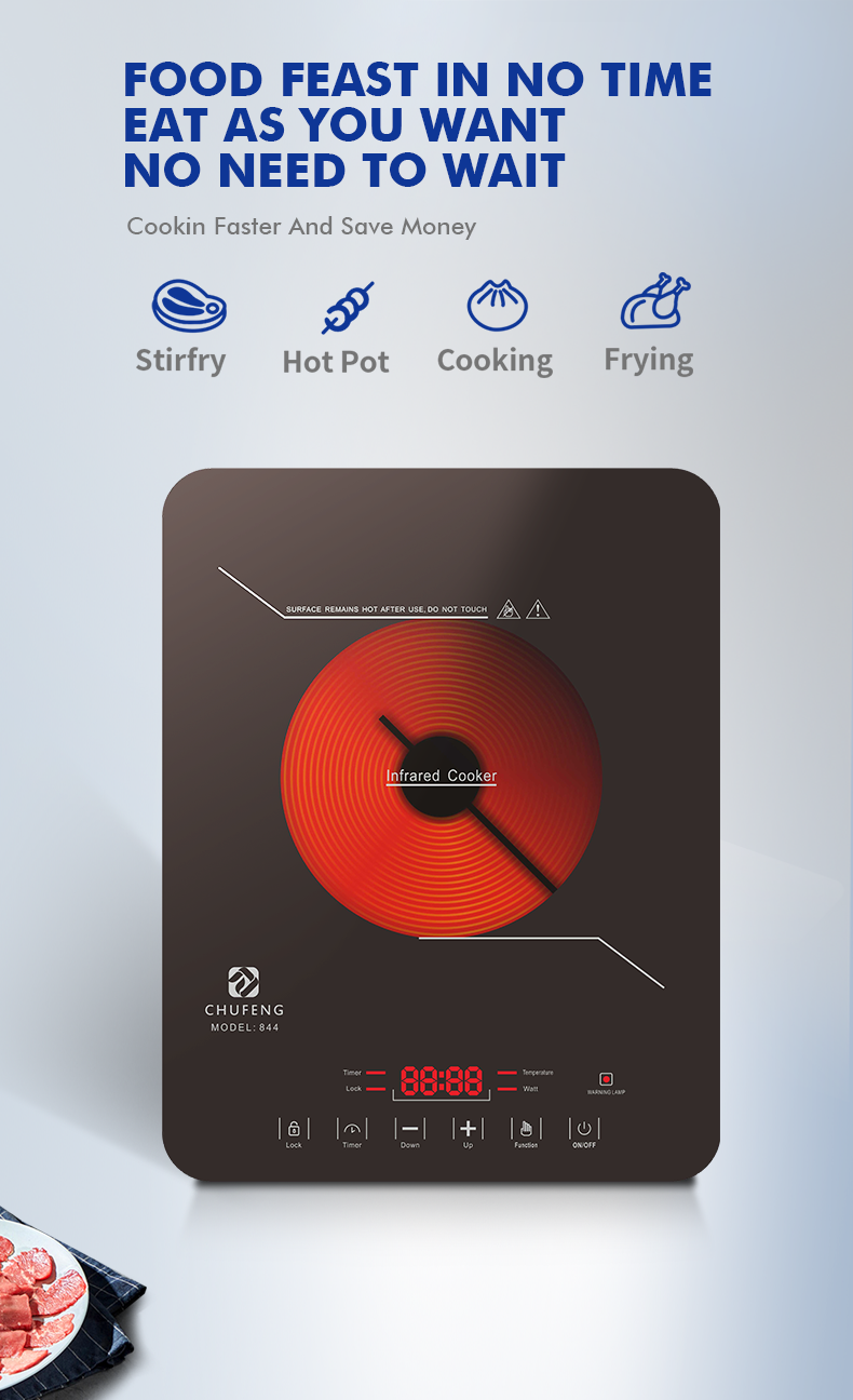 Metall-Infrarotkocher zum besten Preis, Griff mit Knopf, Keramikkocher, geeignet für alle Topfarten
